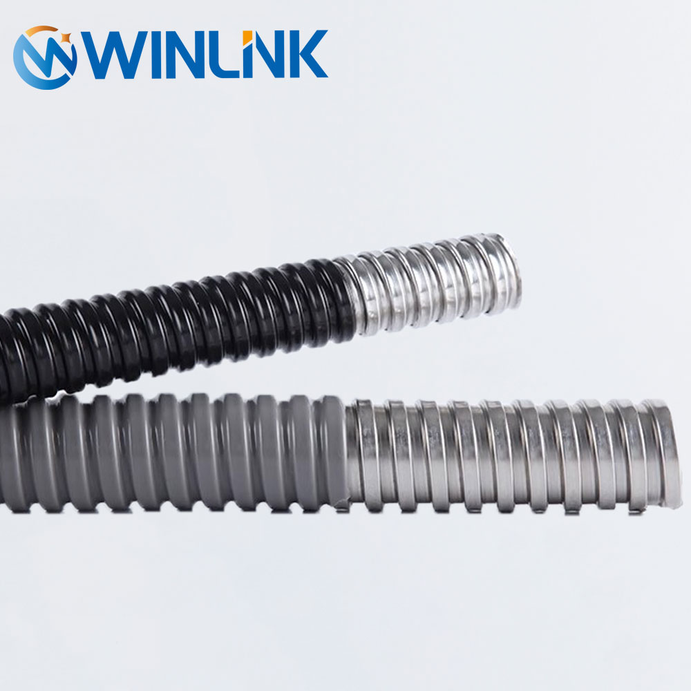 品牌:威联科/Winlink 材料:304不锈钢/外PVC原料 结构:双扣 温度:-10°C至80°C,短时可达100°C 颜色:黑色、灰色 特性:本款包塑金属软管具有良好的柔软与弯曲性能,内部平滑构造,穿线方便快捷