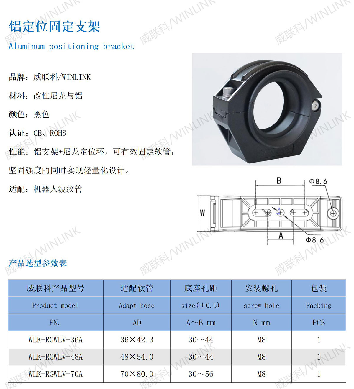 性能:铝支架+尼龙定位环,可有效固定软管,坚固强度的同时实现轻量化设计。
