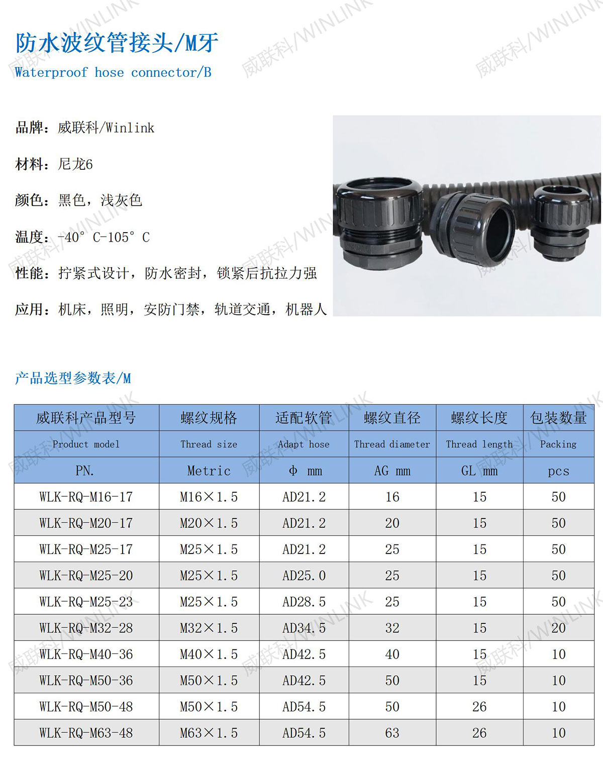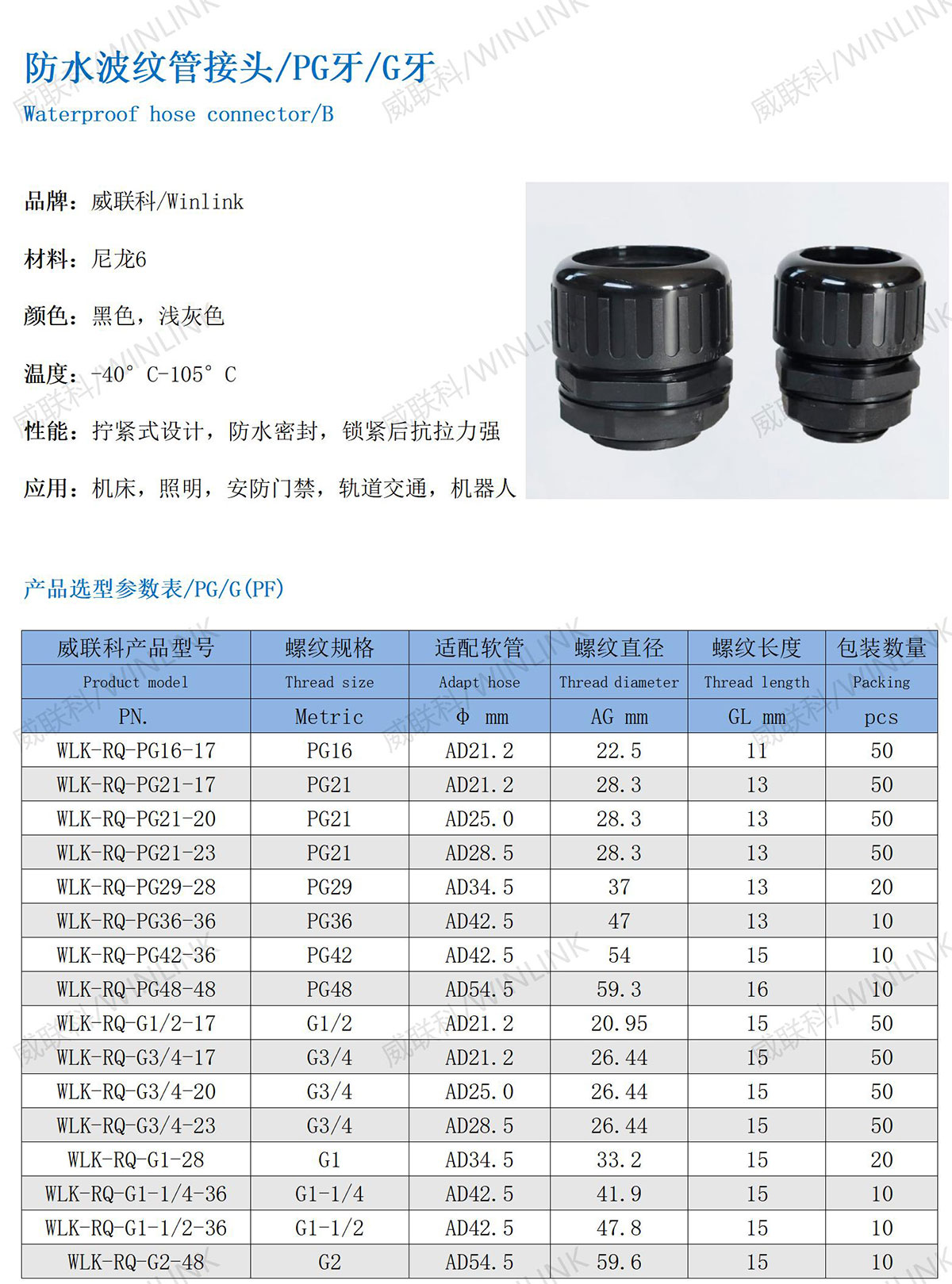 性能:拧紧式设计,防水密封,锁紧后抗拉力强