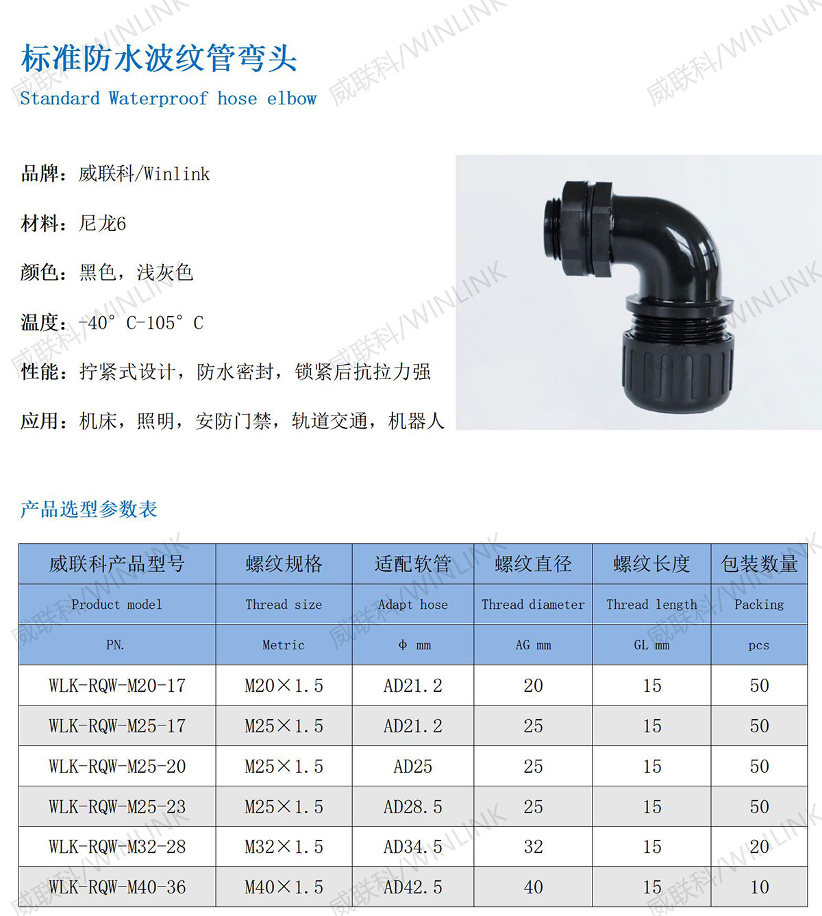 性能:拧紧式设计,防水密封,锁紧后抗拉力强