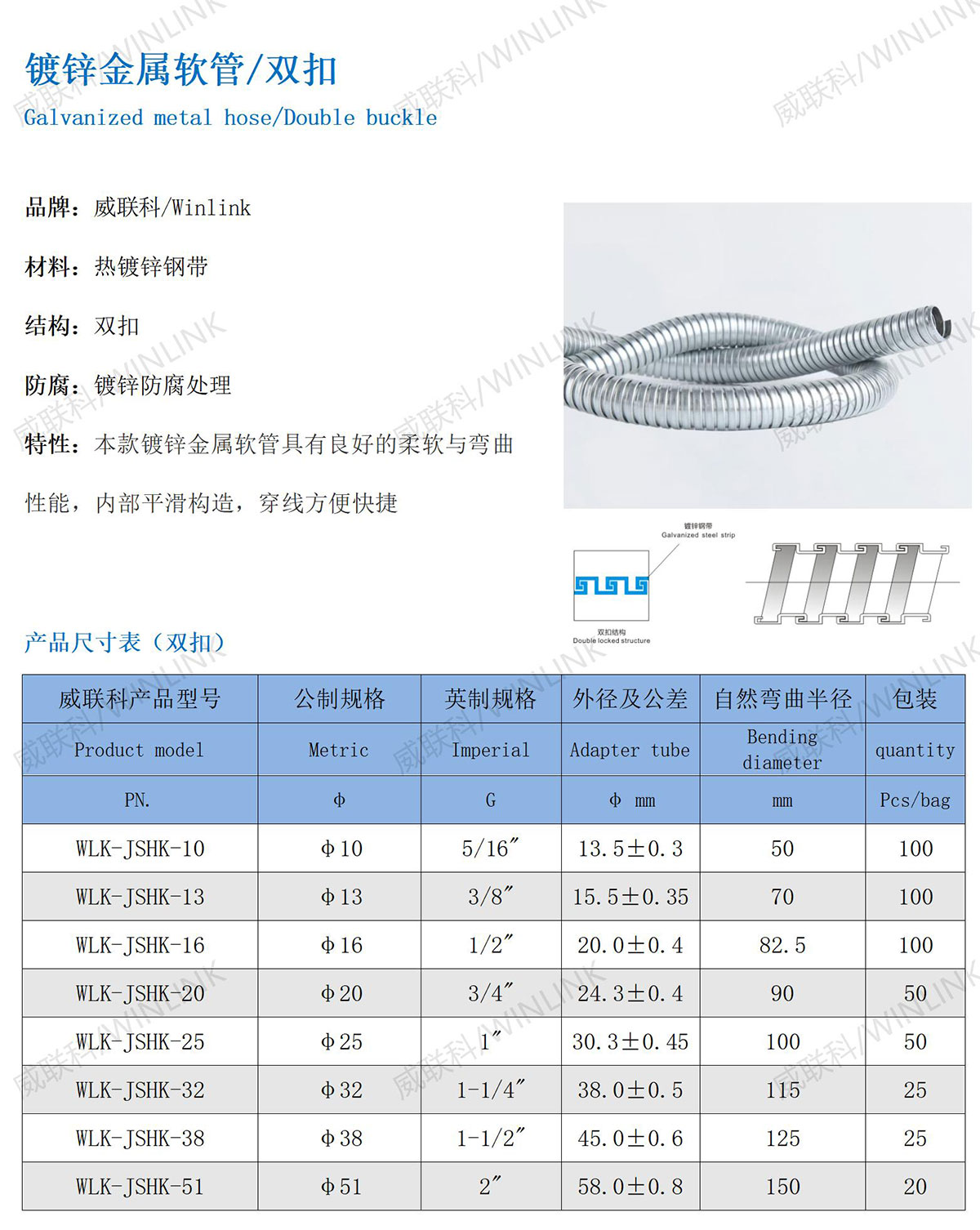 特性:本款镀锌金属软管具有良好的柔软与弯曲